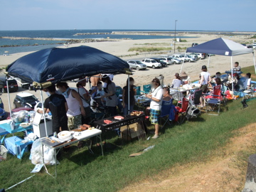 というのも、お昼から新潟でBBQの予定があったから。いきつけの和食屋さんが3店合同のBBQをするからぜひ来てください、と前々からお誘いを受けていたのです。いつもの海とは別の海で、場所は浜からほんの少しだけ上がった高台でした。さすが3店合同というだけあって、人数も多いし本格的です。