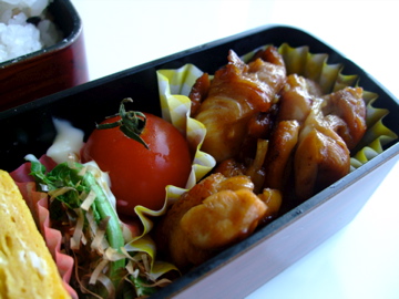 記念すべき最初のお弁当は彼の好きな鶏肉を使って、鶏の照焼き弁当です。