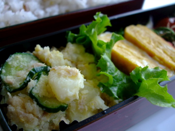 他には定番ですが、出し巻き卵と前日の残りのポテトサラダを。