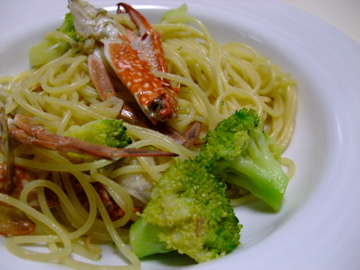 ワタリガニとブロッコリーのパスタ。