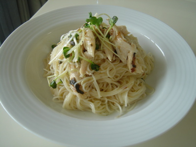 素麺を使ったお料理ですが、味はまるでエンジェルヘアー(パスタ)だったのでこんなネーミングになりました。