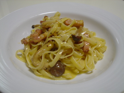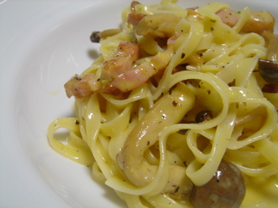 おいしゅうございます。クリーム系のソースにはフェットチーネがあいますね。