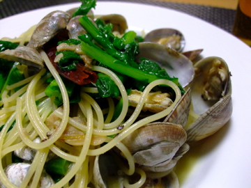 この日はスーパーに行ってみたらあさりが1パック98円、しかもけっこう量もあったんです。それに菜ばなも98円!この組み合わせでパスタに決定です。