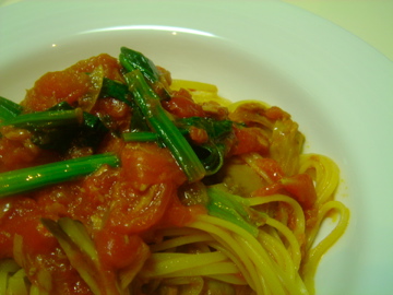 出発まで20分くらい時間があるというので手早くできるパスタを作ってあげました。