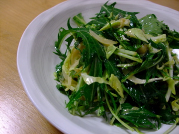 サラダはありあわせの野菜をオリーブオイル、酢、塩こしょうと一緒にあえただけのグリーンサラダです。
