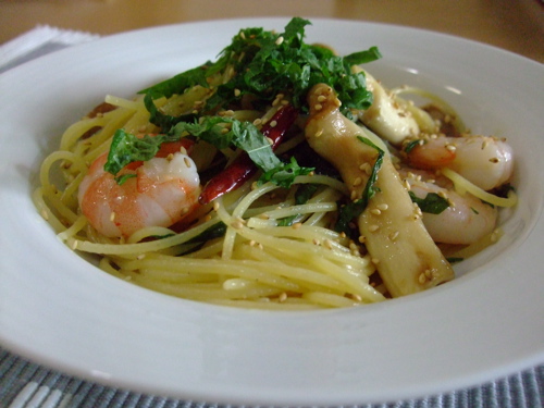 オリーブオイル、にんにく、赤唐辛子、塩でシンプルに味付けしましたが、かにの風味がおいしくしてくれました。