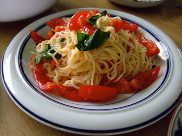 この日はすごく暑かったのでトマトとバジルの冷製パスタを作りました。