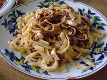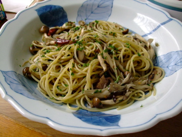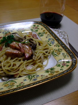 作ってみてあらためて気がつきましたが、うちの実家には洋食器がほとんどありません。和食器にパスタでも悪くはありませんが、いつもとかなり雰囲気の違うお皿になっています。
