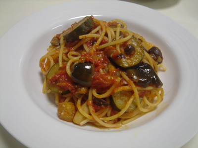 もう1品は昨日のラタトゥユを使ったパスタです。