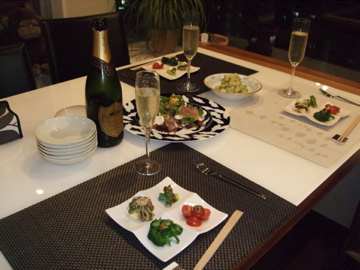 この日は私も仕事があったので、彼女たちが到着する30分前くらいからお料理を始めました。当然お待たせすることになるのですが、「とりあえず飲む?」とまずはビールを飲み、その後お料理がここまでできた段階でカヴァをあけたのでした。
