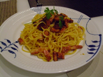 パスタをリクエストされた時からこれにしようと決めていた我が家の定番カルボナーラです。これだけは失敗がないレパートリーだったのに、あろうことか、この日に限って失敗!理由はわかりませんが卵が固まってしまったんです。いつものとろ〜っとしたカルボナーラにはなりませんでしたが、友人たちは「おいしいよ」と食べてくれました。優しいなぁ…ありがとうね。