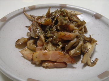 搾菜は先日餃子を買った時に一緒に買ったもので、きゅうりとヒモが入っています。辣油をかけていただきました。