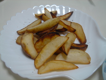続いてはフライドポテト。これも冷凍。お弁当用に買っておいたものですがあまり使わないので思い切って使いました。なかなか減りません。塩と黒こしょうでスパイシーにしていただきました。いわゆる「居酒屋」みたいになってきましたね〜。