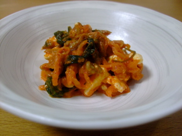これ、思いつき料理にしてはおいしかったです。島らっきょうは火が入るとほっこりしていいですね〜。みじんぎりの島らっきょうも効いていました。