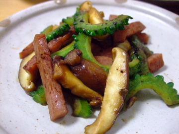 前回のゴーヤチャンプルーは鶏ガラスープと塩で味つけたので、今回はお醤油でさっと味付けしてみました。