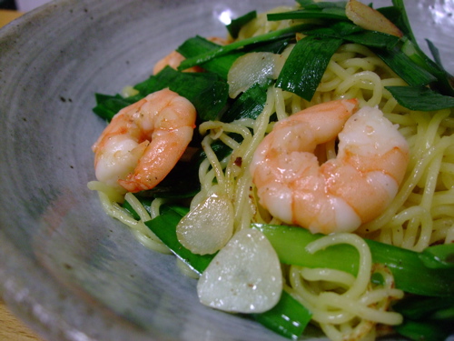 にんにくをきかせた海老やきそば、シンプルですがおいしそうです。