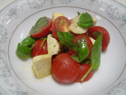 プチトマトと白いチーズのコントラストがきれいで食欲が沸きますね♪