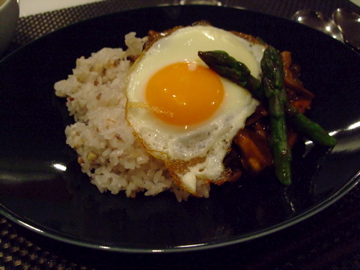 ちょうど冷凍しておいた十六穀米があったので、それと一緒に。