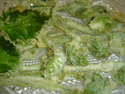 せっかくなので山菜の天ぷらを揚げることにしました。