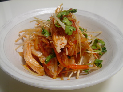 ささ身でヘルシーに、キムチのカプサイシン効果で代謝を上げて!