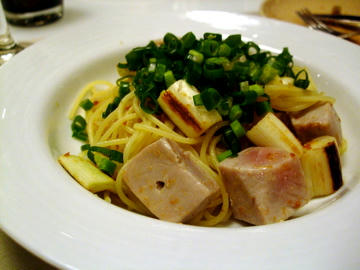 ねぎまのスパゲッティ。いつもながら落合務さんのレシピです。
