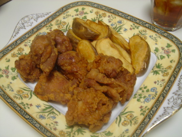 彼のリクエスト「ポテトもね」にお応えしてフライドポテトを添えました。
