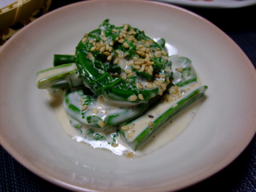 こごみは半分はマヨネーズ和えにして最後に白ごまをふってみました。