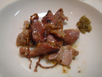 砂肝のしょうが炒め・柚子こしょう添え。