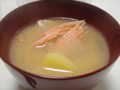 それを解凍して、じゃがいもと大根と一緒にお味噌汁にしました。