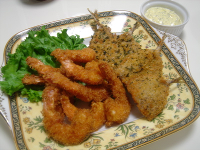 アジは少しだったので、エビも一緒に揚げました。