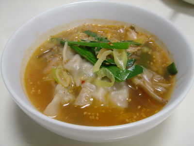 美味しそぉ〜。キムチ入りスープ餃子!