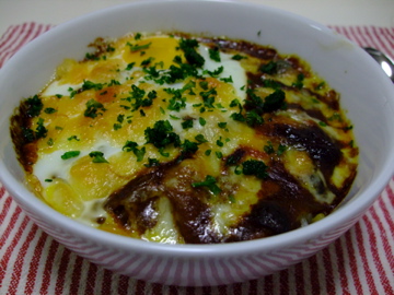 カレーの後で焼きチーズカレーにするのは最近の定番ですけど、卵を乗せるのもまたいいですね。