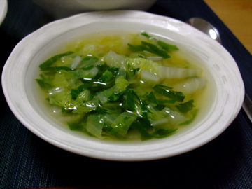 スープはコンソメベースで白菜とセロリの葉だったと思います。