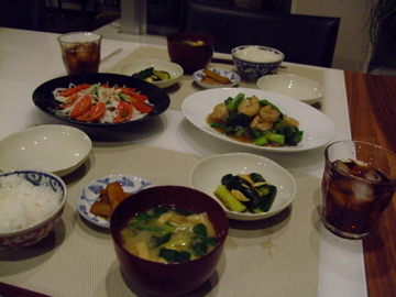 アルコールなしの晩ごはん。こういう日は黒烏龍茶が食卓に上ります。