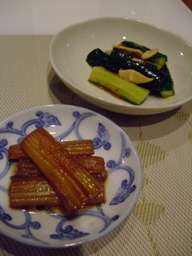 副菜はきゅうりの辛み漬けとセロリの中華マリネ。