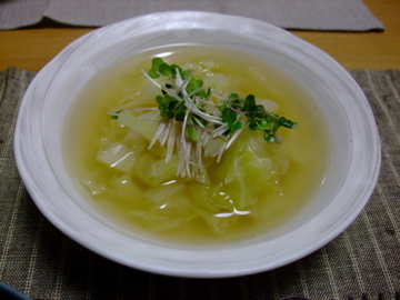 キャベツとたまねぎ、ブロッコリースプラウトを飾って。