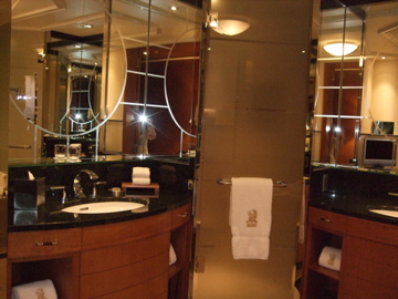 お部屋はやはりゴージャスです。クローゼットも大きいし、洗面台も2つあるし、お風呂も用意されているお菓子たちもゴージャスでした。