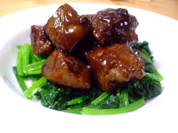 角煮、ふだんはもうちょっとあっさりしたタイプのものを作るのですが、今回は本を見て作ってみました。片栗粉でとろみをつけてそれをお肉に絡める、というのも本のレシピです。見た目本格的な中華風の角煮になりました〜。