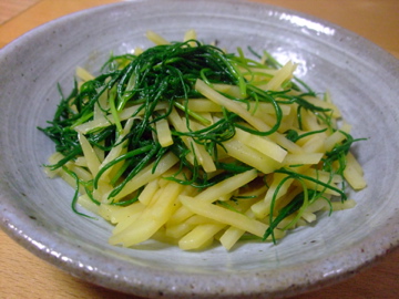 じゃがいもとおかひじきのシャキシャキ炒め。