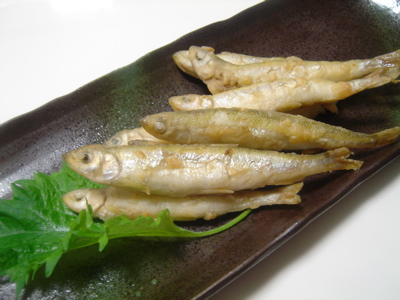 わかさぎの唐揚げです。おろしにんにくとレモン汁、塩コショウで下味をして小麦粉をつけて揚げました。