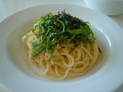 明太子スパにはのりと大葉をたっぷりのせました♪