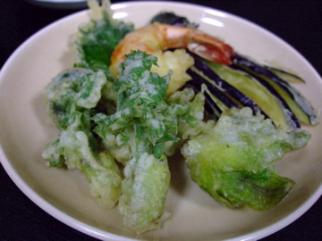 気分は山菜メインなのですが、ボリューム的にはなすや海老が勝ってしまいました。