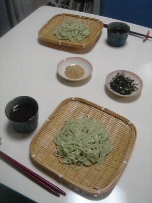 ダイエット中の私たちが12時すぎに食べる、というわけで簡単にざるうどんにしました。お昼にしっかり栄養取ったしね。