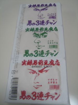 昨日、スーパーで見かけて思わず買ってしまいました。「男の3連チャン」!