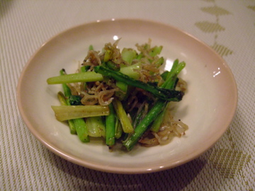 副菜はじゃことかぶの葉の炒め物と