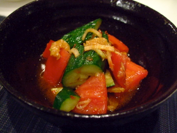 きゅうりとトマトの中華風マリネ。