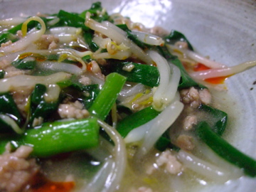 家にあった豚挽肉とニラと一緒にあんかけ炒めにしました。