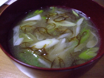 塩もずくを洗って塩を抜いて、長ネギをたっぷり入れました。