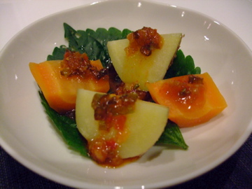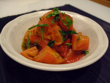 この日はざく切りにしたトマトとイタリアンパセリをオリーブオイル、塩、こしょう、レモン汁でマリネしました。
