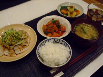 もともと食事にはなるべく野菜を多く取り入れているつもりでしたが、さらに調理法を工夫して余計なカロリーをとらず、なおかつ満足感が得られるような献立を考えなければなりません。今は野菜以外のものをほとんどとらないのですが、この日はまだダイエットを始めた頃だったのでお肉を少し使ってこんなメニューになりました。